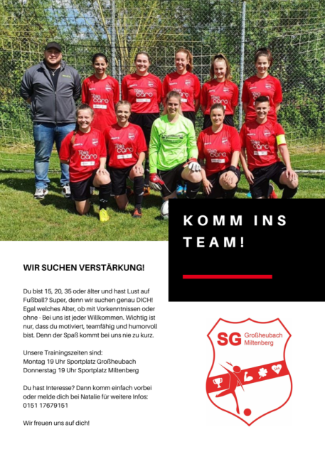 Wir möchten hiermit gerne dem aktuellen Anliegen unserer Damenmannschaft nachkommen und Werbung in eigener Sache machen! Unsere Damenmannschaft sucht dringend Verstärkung und bittet dazu um eure Bewerbung bzw. eure Initiative! Uns als langjähriger Traditionsverein ist es ein überaus großes Anliegen, dass unsere Damenmannschaft weiterhin (erfolgreichen) Bestand hat und erfolgreich im allgemeinen Vereinsleben agiert!