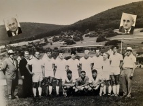 Stehend v. links: Spielausschuß-Vorsitzender Josef Zeller, Rudolf Köhler, Werner Schmucker, Norbert Berger, Dieter Schmidt, Martin Seitz, Willi Bauernhansl, Friedel Schwarz, Oswald Dörrich, Dieter Kuhn, Spielausschuß-Mitglied Hans Aulenbach