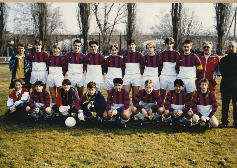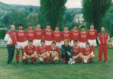 v.links stehend: Jugendleiter K. H. Snecht, C. Kirchgässner, U. Hiller, P. Ciraci, E. Kadiroglu, K. Oezcelik, T. Hörnig, H. Holt, M. Snrügel, U. Häufglöckner, Betreuer G. Keppler, Trainer K. Schmitt